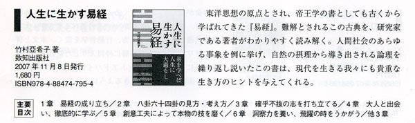 二年前に出した「リーダーの易経」は難解といわれる易経を分かり易く書いたと評価されました。 それでもまだ難しい、読みづらいという方たちのために”とっつき易い・読みやすい・わかり易い易経”として 『人生に生かす易経』を作りました。